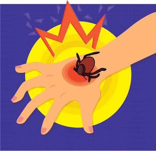 At the site of a tick bite, tiny red bumps can develop. Slowly, these bumps develop into concentric bull’s eye rashes. In some cases, bacterial infection can spread to the cardiovascular system or central nervous system.