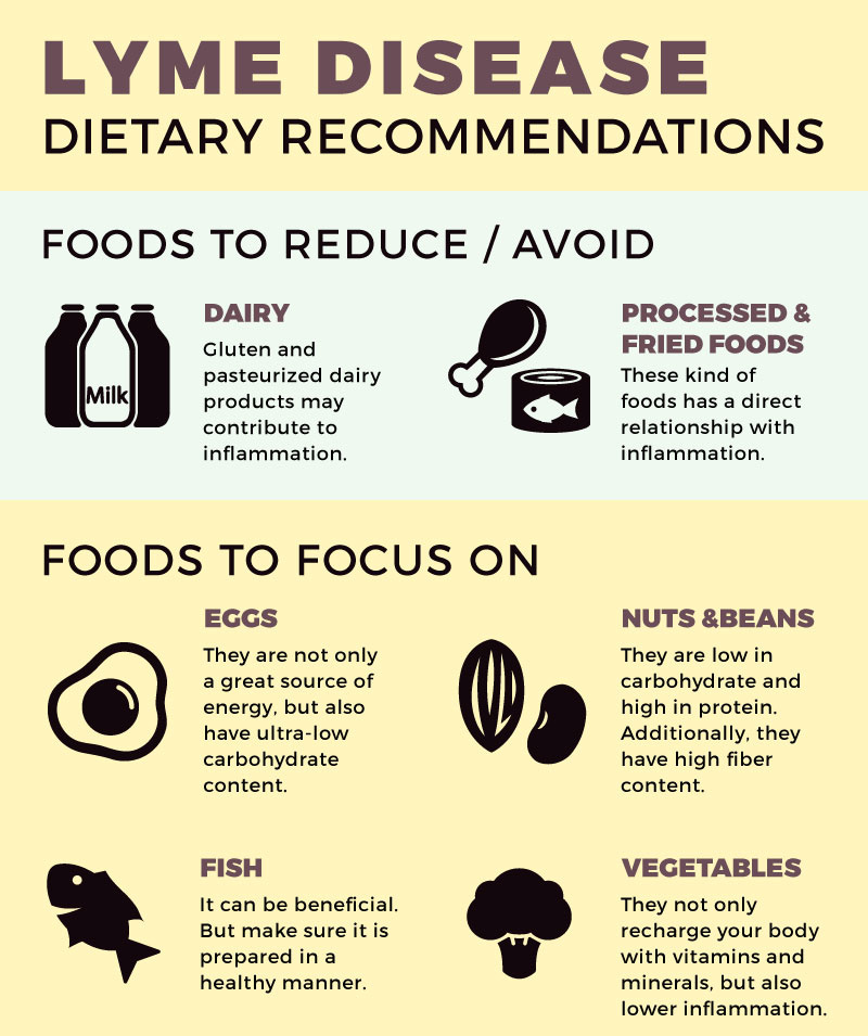 - Lyme disease requires medical treatment, like antibiotics, to tackle the infection itself. However, your diet is a crucial key in fast healing and making that treatment effective. Think of it this way: antibiotics and therapies address the problem, while a healthy diet helps your body rebuild and recover.