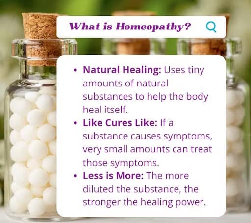 Homeopathy is an alternative medicine based on the principle “like cures like” which means a certain substance causing symptoms in a healthy person, leading to a healing response when used in highly diluted forms. The system of homeopathy means substances causing symptoms in healthy individuals are used in highly diluted forms to manage similar symptoms in sick individuals.