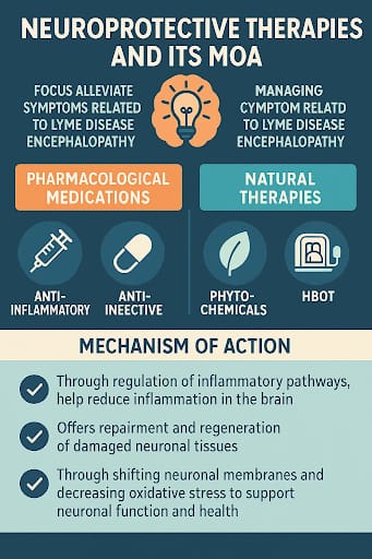 - Natural therapies for neuroprotection such as – Phytochemicals and HBOT (Hyperbaric oxygen therapy) are used to manage Lyme disease related cognitive dysfunction.
